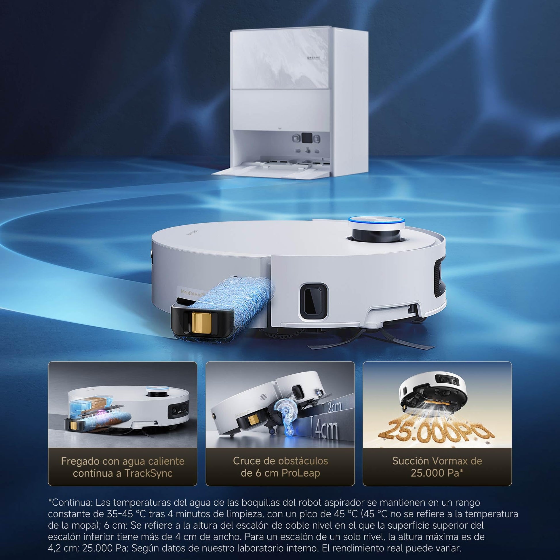 dreame Aqua10 Ultra Track Complete, Robot Aspirador, Friega a 45 °C, Temperatura Constante, Cruza Obstáculos de 6 cm