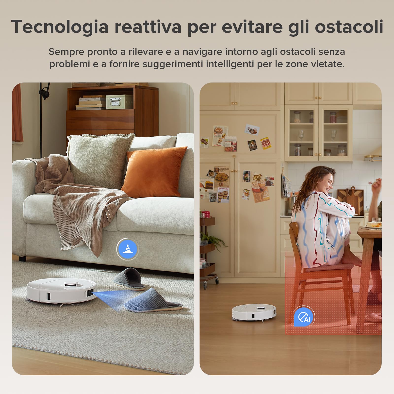 - Reactive Tech para evitar obstáculos: Equipado con el sistema Reactive Tech, el robot aspirador QV 35A detecta y evita con precisión obstáculos como muebles, cables y zapatos. También identifica de forma inteligente las zonas prohibidas, como escaleras o espacios reducidos, para evitar atascos y garantizar una limpieza ininterrumpida.